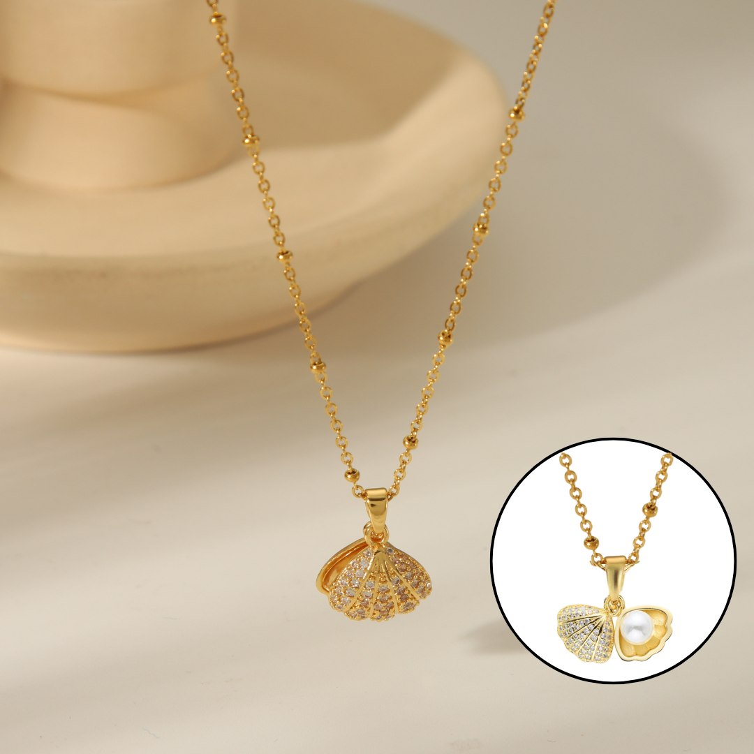 Descripción: Collar con una perla dentro de la concha. La cadena de acero inoxidable asegura durabilidad y estilo moderno, mientras el su forma con la concha y la perla le da un toque de elegancia única. Ideal para cualquier ocasión, este collar es la elección perfecta para tu estilo.