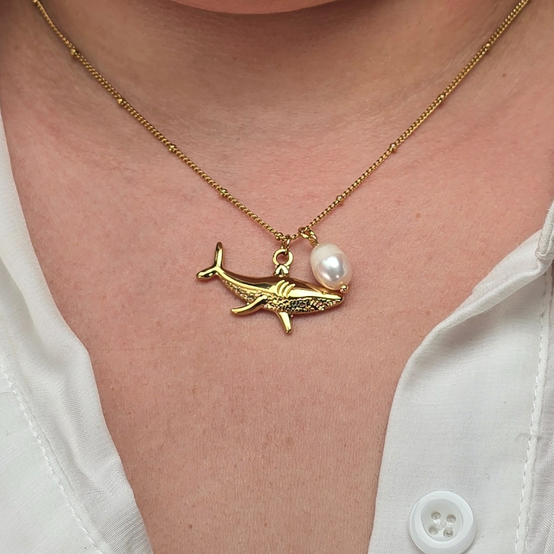 Descripción: Collar con un tiburón y justo al lado una perla blanca cadena en color Oro. La cadena de acero inoxidable asegura durabilidad y estilo moderno, mientras toque de mar le da un toque de elegancia única. Ideal para cualquier ocasión, este collar es la elección perfecta para tu estilo.